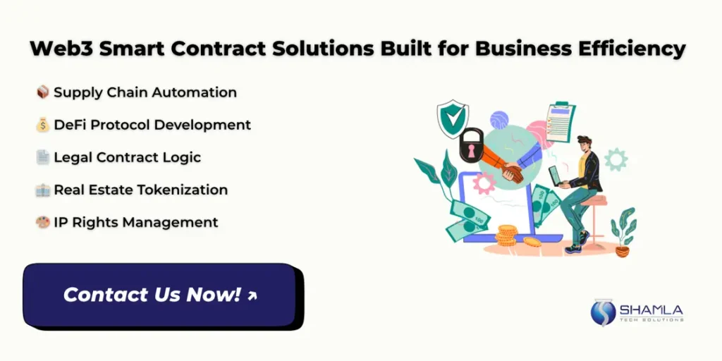 Shamla Tech is a Web3 development company that designs, codes, tests, and launches reliable smart contract solutions that are customized for real-world business use across blockchain networks. Our engineers handle coding, testing, and audit processes using industry tools like Hardhat and OpenZeppelin.